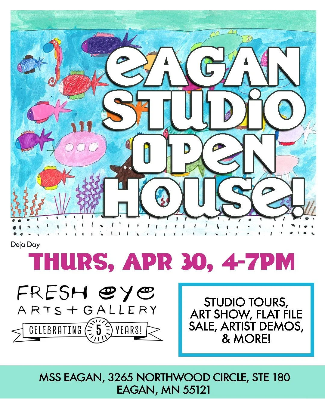 As part of the 5th anniversary of Fresh Eye Arts, we’re hosting our first ever Studio Open House at our Eagan studio!